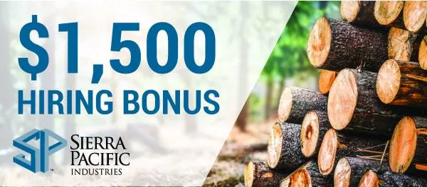 Up to $1,500 hiring bonus! Certified Lumber Graders earn $33.35 per hour We train and promote from within Excellent low-cost health benefits Retirement plan with employer-paid contributions Paid vacation and 10 holidays At Sierra Pacific Industries, we understand our greatest strength is the people who choose to build a career with us. We are a 4 th-generation family-owned company that has grown to be 1 of the largest lumber and millwork producers in the United States. Our more than 6,000 employees are proud to work at our state-of-the-art sawmills and other facilities, including: manufacturing, custom wood-framed windows, fabrication, millwork, veneer, cogeneration, trucking, forestry, and other operations. Our division in the beautiful mountain town of Quincy, California is seeking a qualified Certified Lumber Grader for our sawmill. Nestled along the Sierra Nevada Mountain range, Quincy was named 7 among the most beautiful and charming small towns in Northern California, as well as 8 on the list of Americas Coolest Small Towns. Come live, work, and play in this beautiful outdoor community! About the Position Visually inspect quality of lumber to be graded and grade lumber of varying dimensions and species Apply grade rules to maximize lumber profitability Ensure lumber produced is within grade parameters to maintain grade reliability Ensure lumber produced is within expected grade yields and take appropriate action or troubleshoot to correct Maximize yield by either determining if flaws in lumber need to be trimmed to maintain higher grade or reduce the grade of lumber Calibrate and monitor or grade scan Straighten lumber that may be jammed or crossed up Qualifications 2 or more WWPA, TPI, or similar grader certification required 5 years in the lumber industry In-depth understanding of American Lumber Standard grading rules Recent, good, verifiable work references Why Join Our Team? Because this is more than an invitation, its a commitment to offer opportunities for personal and professional growth to every 1 We ask people to grow with us and make the company even better. We provide an excellent benefit package including a full Health Benefits Planincluding medical, dental, and visionwith low-cost premiums, a 401 kwith Company Match, additional Retirement Contributions, and company-paid Life Insurance. How to Apply If you are qualified and would like to join our team, please apply in person Monday through Friday 7 am to 5 pm. Sierra Pacific Industries 1538 Lee Road Quincy, CA 95971 530-283-2820 or apply online and view all our career opportunities at: spi.careers Sierra Pacific is anEOEEqual Opportunity Employer, including those with a disability and veterans. About Our Company Sierra Pacific Industries is a 4 th-generation family-owned company based in Northern California that started in 1949 and has grown to be 1 of the largest lumber and millwork producers in the U.S., employing around 6,500 crew members. Sierra Pacific continues to be a company where its employees are proud to work at state-of-the-art facilities and others strive to become part of the team. We own and sustainably manage more than 2.4 million acres of timberland in California, Oregon, and Washington. Our forests are sustainably managed under a 100-year plan by Registered Professional Foresters, Wildlife Biologists, Botanists, and other professionals. We are growing forests for our future, planting over 6 million new trees every year. In Spring 2024, we planted our 300 millionth seedling on our timberlands. This milest 1 was decades in the making, reflecting our commitment to sustainable forest management and ensuring we have forests not just for today, but for generations to come. Sierra Pacific effectively uses nearly 100 of every piece of wood we bring to our facilities. In fact, any small amount that isnt turned into hand-crafted doors and windows, millwork, lumber, or landscaping material is actually converted into electricity in our 8 biomass-fueled power plants. We are proud that all Sierra Pacific facilities follow our drug-free and tobacco-free policies. As part of our safety in the workplace policy, an offer of employment is subject to a negative drug screen result. We use E-verify to verify the social security number and work authorization of all newly hired employees. Sierra Pacific is anEOEEqual Opportunity Employer, including those with a disability and veterans.