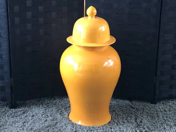 H-28 W-15 EXCELLENT CONDITION COLOR: YELLOW PLEASE USE MEASURE TAPE TO SEE HOW BIG THIS IS. IT’S A BIG VASE PLEASE TEXT, CALL OR EMAIL 720-361-6405