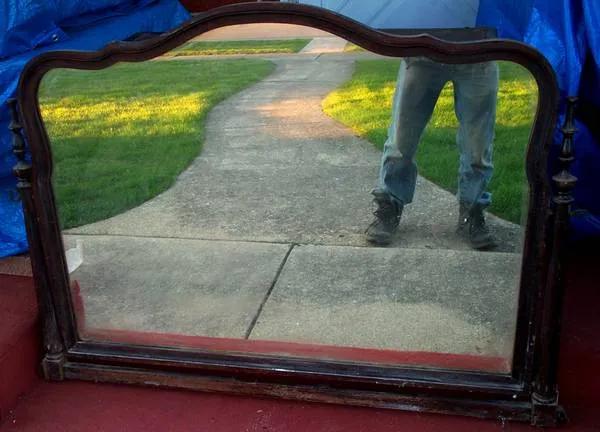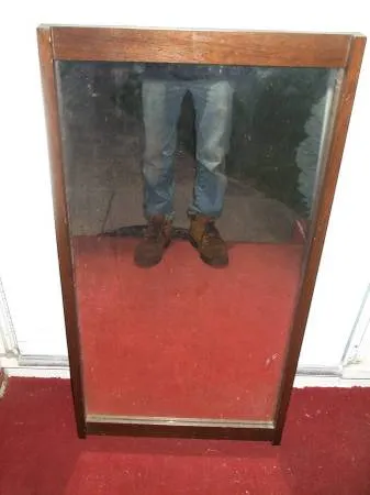Antique wood framed mirror designed to hang vertically. Perfect for any vintage styled motif. Glass is in good condition. Measures aprox 211/4 wide x 11/4 thick x 42 h 8. Wire in back and ready to hang. Real wood...not plastic or particle board. Hard to find mirrors like this. Pick up from Villa Park, IL. Please call or text 630-977-3882. If you email please include a number I can reach you at. Thanks for looking.