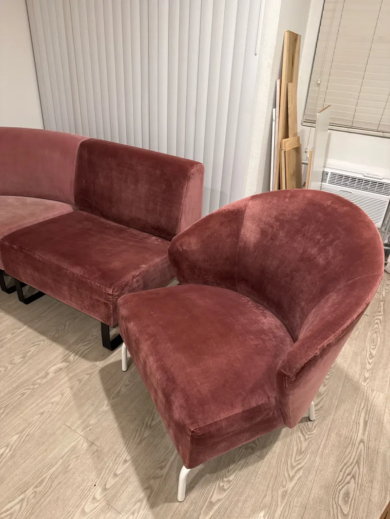pink and bergundy sofa set