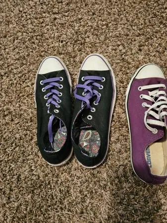 New/ like new. Black with purple laces 10 women/8 men. $20. Call or text if interested. 406-210-3313