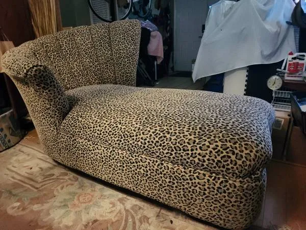 Leopard chaise lounge Like new condition from non smoking home 66 long x 42 at 5 he widest point $225 cash Call or text 941-284-9704