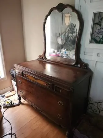Antique Dresser From non smoking home 50 wide x 23 deep x 35 tall 74 tall with mirror $200 cash Call or text 941-284-9704