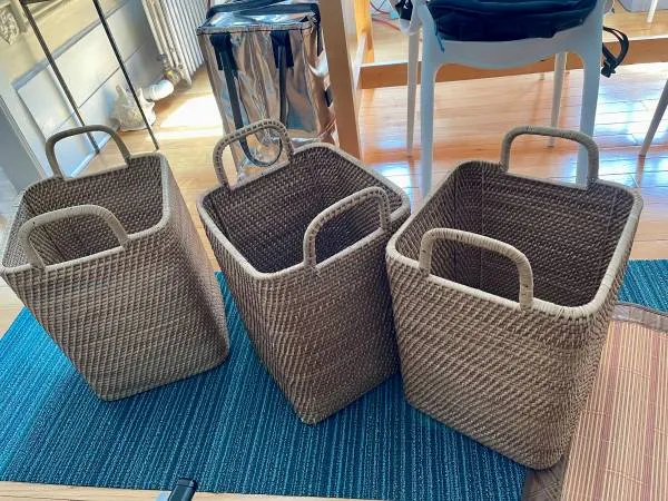 3 Gorgeous Modern Weave Rattan Baskets from West Elm - LIKE-NEW Retails for $150/each$450 tax/total Our durable Modern Weave Harvest Baskets are the ideal size for storing magazines and throws in the living room, toys in a playroom or odds and ends in an entryway. Each is handcrafted from tightly woven rattan peel. - Rattan peel. - Each piece is handwoven. - Sturdy handles for easy portability. - Made in Vietnam. ---------------------------------------------------------------------------------------------------------- Im located at 501 W 110 th St. Craigslist email OK, but texts get a faster reply at 917-495-0690. Cash or Venmo.