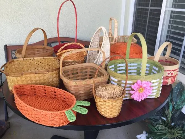 Lots of baskets deferent colors, styles, sizes available for sale. Price ranges from $5 to $15. Call: 619-569-9995.