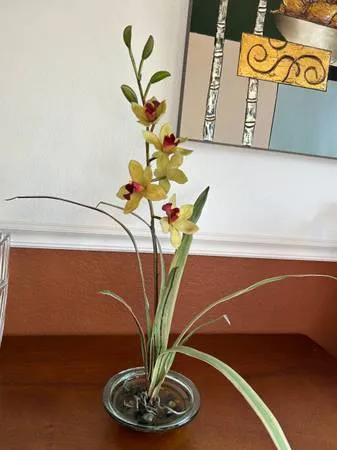 27 high. Gorgeous artificial silk flower orchid plant. In perfect condition. Call: 619-569-9995.