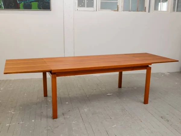 Absolutely stunning Danish Mid Century Modern teak table with 2 very study leafs that pull out from the ends and store inside. The table is very sturdy. The top grain is immaculate with no scratches as well as both leafs. The legs are finger jointed to the base to create not only a strong joint but also an elegant touch of craftsmanship. If youre interested call/text me 425-655-0519 Free delivery in tacoma Dimensions Wide 37 ½” Long 65 ⅜” H 828 ⅞” Each leaf adds to leng...