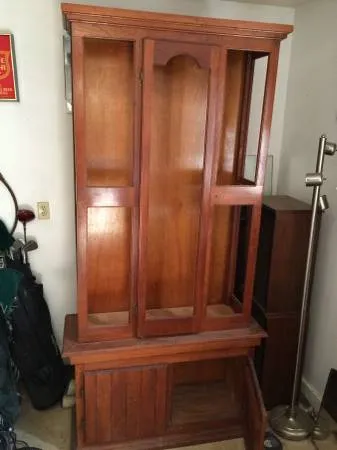 GUN CABINET NO GLASS NO GUN RACK 7 X 4 NO GUN HOLDERS ALL MESQUITE $455 CASH THANKS 210-286-8650 TOP WILL COME OFF BOTTOM CABINET