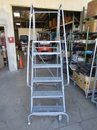 Used Uline rolling ladder with wheels. 6 step 24 wide, 60 to platform, 100 to top. $250.00 See at 1134 S. Park Ave, M-F 9-5. 520-623-7162.