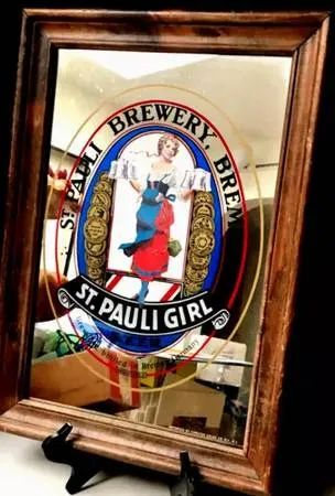 VTG St. Pauli Girl Mirror Sign * GENUINE 1975 ADVERT Brewery HAND ART 21 x 15 Rare Find,,,Beautiful German Beer Advertisement St. Pauli Girl 1975 poster/sign on Mirror Glass First introduced into select U.S. markets in 1965 expanded nationally by 1975 It Measures 21 High & 15 wide today St. Pauli Girl is the 2 German beer in America Great for Restaurant, Bar, Man-CAVE, Store ,etc CALL-dAVE 440-238-9570