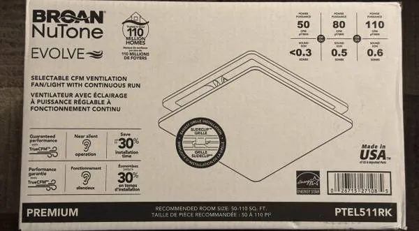Brand new Broan-NuT 1 Premium Exhaust Fan Model: PTEL 511 RK Never opened. Sells new for about $335. Asking $150 OBO. Cash only. Details can be found here: https://broan-nut 1.com/en-us/product/ventilationfans/ptel 511 rk or here: https://www.lowes.com/pd/Broan-EVOLVE-Premium-Exhaust-Fan-w-Continuous-Run-and-Full-Lit-Grille-50-80-110-Selectable-CFM/501-561-9487