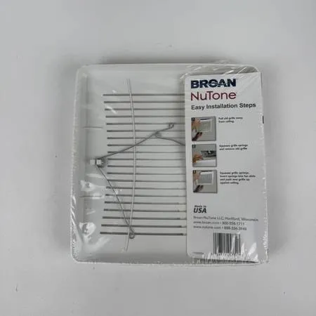 Unused still sealed Broan Nut 1 FGR 101 replacement grille kit. The grille measures 9-1/4 x 9-3/4 and is designed to fit existing fan housings with dimensions of 7-1/2 x 7-1/4. Compatible with Broan and Nut 1 models 695, 696 N, 670, 688, E 050, 671, and 689. Pick up in east Redding. Text me: 530-638-4076. Cash, Cashapp, Venmo, or Zelle. B 00322