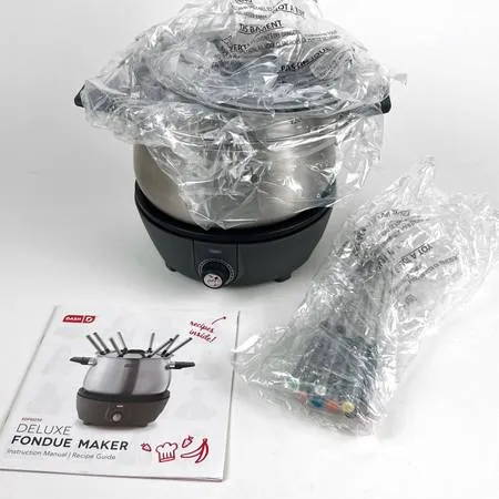 Dash Deluxe Stainless Steel Fondue Maker with Temperature Control, Fondue Forks, Cups, and Rack, with Recipe Guide Included, 3-Quart, Non-Stick Grey. Gently used and in excellent condition with everything shown. Pick up in east Redding. Text me: 530-638-4076. Cash, Cashapp, Venmo, or Zelle. B 00110