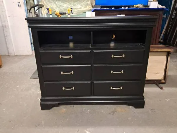 Selling a nice modern black media cabinet or could be used as a dresser / TV stand combo for bedroom. Excellent overall condition. Measures 48 inches wide, 40 tall and 17 deep. Please call or text me at 631-796-2729 if youre interested. Thank you.