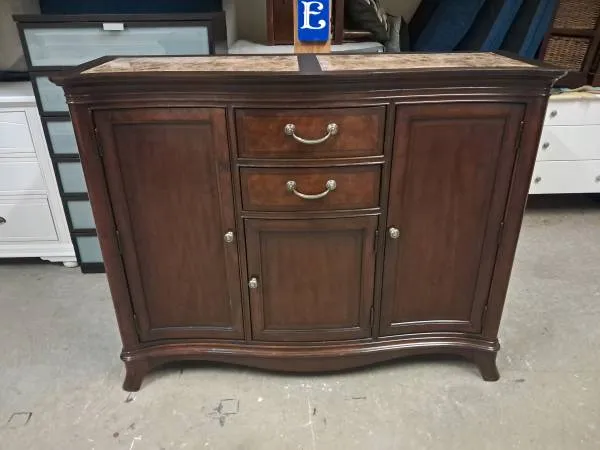 Selling a nice modern dark espresso color buffet or tv stand / media cabinet with granite inlay on top. Excellent overall condition. Measures 56 inches wide, 44 tall and 19 deep. Please call or text me at 631-796-2729 if youre interested. Thank you.