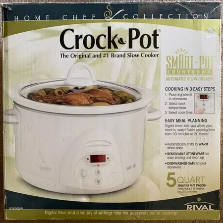 Please call 818-600-1230 Like new in box digital crock pot Black insulated carrying case included Round - white