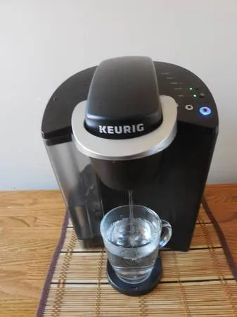 Uses K-Cup pods to brew 6, 8 or 10 oz.s in about a minute. Auto-off button. Removable 48 oz. water reservoirw/slight damage to top. Compatible w/My K-cup reusable coffee filter. Water heated alert, descale alert and low water alert. Asking $35 cash. Please call or text Jim at 617-308-4473.