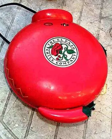 Quesadilla Maker manufactured by the El Paso Chile Company by Sensio. Model GH-188. Non Stick cooking surface. Electric appliance. Red color with a cool looking pepper for a handle. Works well and power light on top. Cooking area has some surface wear. Appliance measures aprox 101/2 length x 11 deep x 4 h 8 with a 10 cooking surface. Used condition. Pick up from Villa Park. Please call or text 630-977-3882. If you email, please include a number I can reach you at. Thanks for looking. ...