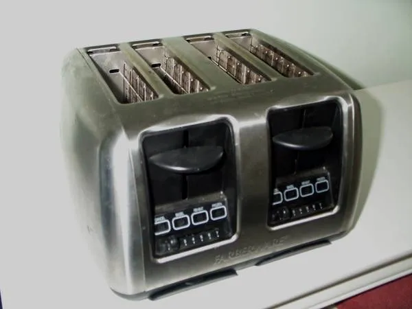 Works great. Faberwear 4 slice toaster model 201348 sold by Walmart. Bagel, reheat, frozen light up buttons. Sliding temperature control adjustment. 2 easy pull crumb trays. General wear and marks. Nice toaster! Measures aprox 101/2 length x 9 deep x 7 h 8. Pick up from North Aurora. Please call or text 630-977-3882. If you email please include a number I can reach you at. Thanks for looking.
