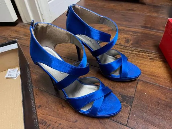 Michael Antonio woman sandal size 8 high heel blue 713-340-9900
