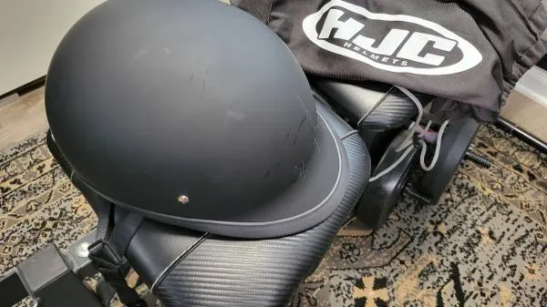 Almost new skull cap motorcycle helmet. HJC. Daytona Hawk Size medium With bag 704-266-0351 Call text or email.