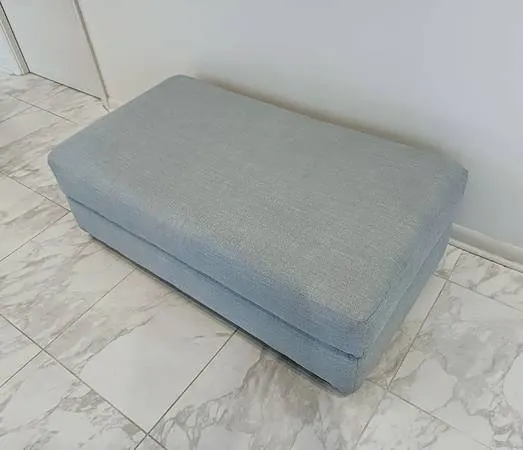 High-quality oversized cocktail ottoman from St 1 & Leigh, a premier high-end furniture maker renowned for its North Carolina-crafted upholstery. The ottoman is in excellent condition and features plush cushions and durable performance fabric in a versatile light blue hue. Perfect for coastal, modern, or neutral decor. Can be used as a coffee table or for extra seating. Dimensions: 49 L x 27 D x 16.5 H. Original price over $700. ** I prefer text messages 214-494-0595