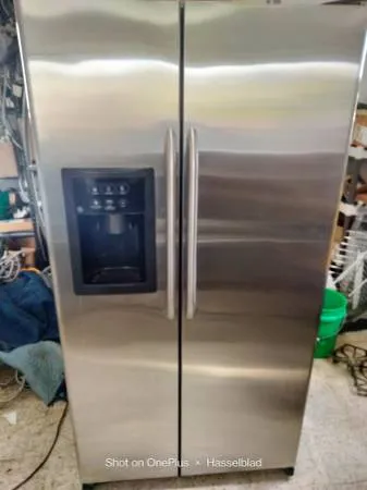 Frigidaire Refrigerator Stainless Steel Side by Side Clean* in Great Working Order only thing features Water Filtration System, Ice Maker, **630-449-8012**pick up only Easy Access.