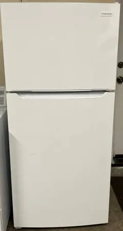 New White Frigidaire Top Freezer Refrigerator 18.3 Cb Ft Capacity Still in the box, never been used Everything is working great Deliver, Install, removed out and haul away the old 1 available for extra FEE depending on distance Hablamos Español También Please call or txt 209-244-3746 Thanks Gracias
