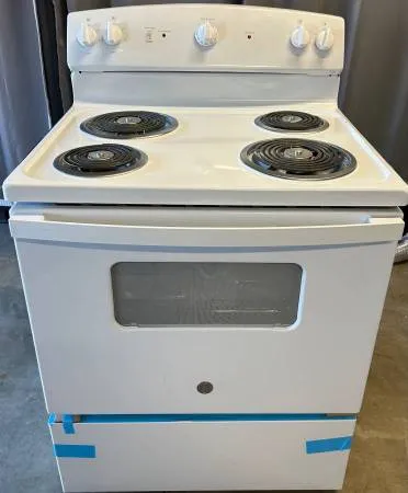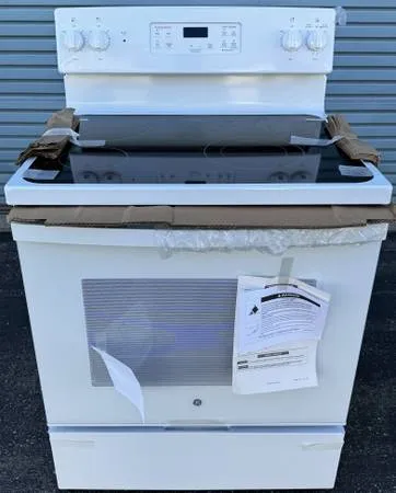 New White GE Electric Stove 30 Width Open Box with some cosmetic things only Delivery, install and haul away the old 1 available for extra FEE depending on distance Hablamos Español También Please call or txt 209-244-3746 Thanks Gracias