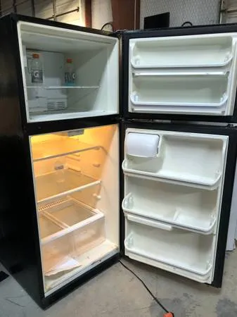 Need a clean, quite, good and reliable working fridge? This is a Frigidaire FFHT 2021 QB 0 Top Freezer Refrigerator with 2 sliding shelves. It comes from a smoke free and pet free environment. And its ready to be plugged in and used. Measures 30 Widex 31 Deepx 69 High. Keep your foods cold and frozen with this great working fridge with a total of 20 Cubic Feet capacity. Fridge Highlights: ---------------------- - Adjustable Sliding and Shelves / Compartment - Dairy Bin - Lighted Inside - Black Color - Freezer Temperature Control - Ice Marker Present - Good working Condition - Very Quiet Operation If you have any questions, please feel free to ask. You can reach me via text, email or by phone call at the above listed number 214-735-3227. Thank you.