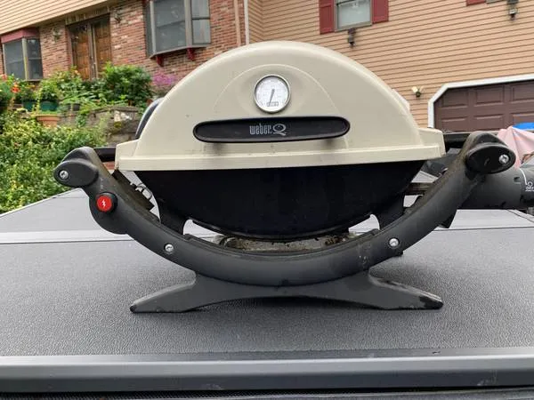 For sale is a 8 years old 12,000 BTU, Weber Q 200 portable propane grill, model Q-396002, 462 sq. in cooking area, come with rolling cart, cover and an almost empty tank, used very little, in excellent conditions. Compact portable design, great for tailgate, apartment and condo grilling. Paid over $600 when new with tank. Asking $150 - cash only. Please call me at 978-590-2882 or email me if interested.