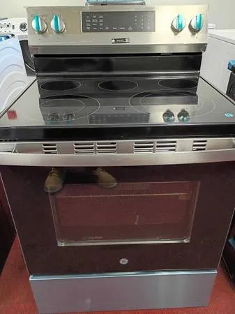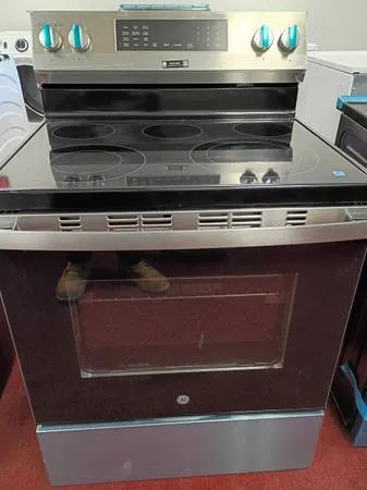 THIS IS A STAINLESS GE 5 BURNER GLASSTOP, HAS HUGE 11 IN DBL. POWER BOIL BURNER AND 10 IN. DBL. POWER BOIL BURNERS IN FRONT THEN 2 SMALL 6 IN, BURNERS IN BACK W/WARMING BURNER IN MIDDLE, THE OVEN IS 5.9 CU. FT. AND HAS CONVECTION AND NO PREHEAT AIRFRY HAS DENT ON SIDE NOTHING MAJOR THATS HOW I GETTHEM THIS WONT LAST AT THIS PRICE FIRST TIME PUT ON, RETAIL S 1299 CALL 978-230-9895 WILL SELL FIRST $700 CASH CAN DELIVER FOR EXTRA CALL 978-230-9895 DONT DELAY CALL TODAY