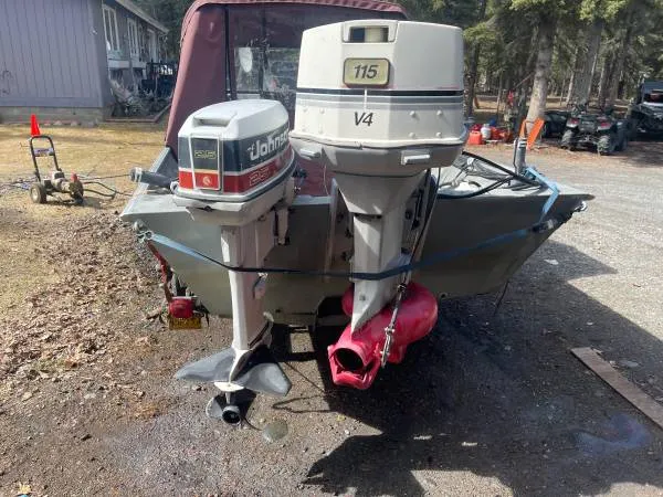 115 Johnson Jet, 25 hp Johnson kicker full canopy, 2 fuel tanks, excellent condition , tunnel hull can run in very shallow water, trailer in excellent condition 907-259-3446