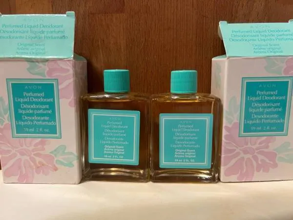 2 Avon Perfumed Liquid Deodorants in packages. Discontinued NOS. Each bottle is 2 oz. From a smoke free home. $15.00 cash for both. phone calls only please. 214-886-1088. Thank You!