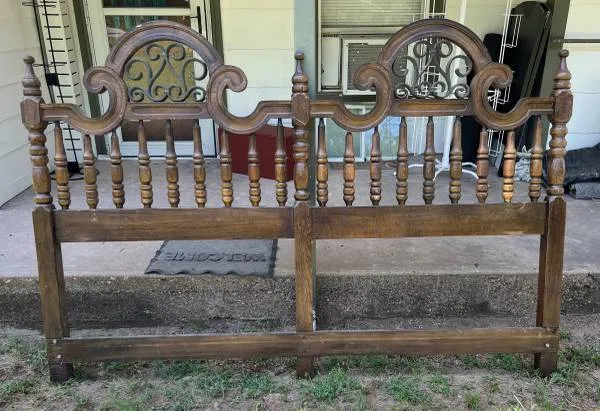 Vintage Oak King Spanish Headboard. Bought new in 1973 at Sears. Headboard was part of the San Marco Collection. In good sturdy condition. From a smoke free home. $100.00 cash. phone calls only please. 214-886-1088. Thank You!