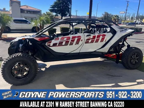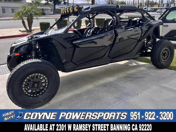 2025 Can-Am® Maverick X 3 Max X RS Turbo RR With Smart-Shox Triple Black BUILT FOR THE VICTORY LAP. Run at the front of any pack with 3 of your friends, 200 horsepower, Smart-Lok™ Differential featuring Trail Activ mode, Including fully self-adjustable Smart-Shox suspension technology, responding on both compression and rebound Features may include: Innovative Suspension Setup Arched double A-Arm / Torsional Trailing-Arm XTTX With double A-Arm throughout the lineup, strength comes standard. All 72 in. wide models benefit from a Trophy-Truck inspired suspension design. Our X rc and X mr models also boast arched double A-arms for maximum ground clearance. This Clutch Changes Everything Performance, Reliability and Comfort The Can-Am Maverick X 3 features the pDrive clutch. By using rollers instead of sliders to limit wear and tear, it’s a breakthrough in reliability and performance. This clutch offers 30 more shifting amplitude for faster and smoother upshift and backshift. Find the perfect RPM and great control at all times, and focus on riding—the pDrive has the rest covered. Strength Is Power Reinforced frame and A-arm protection Top engines, and customers, expect the strongest platforms that don’t back down. Here comes an ultra-efficient and lightw 8 chassis thats bulletproof to any riding style. We’re not talking gravel. Bound over boulders, trounce through dunes without a care in the rugged, craggy world. Wheels & Tires High-performance wheels and tires Equipped to go the distance and get the most from the Maverick X 3, anywhere. Each Maverick X 3 package gets a unique setup, from staggered 30 in. ITP Cryptid† mud-ready tires, to the legendary 32 in. Maxxis Carnivore† tires with beadlock wheels. Ergo-Lok cockpit and low seating Sit on the edge of innovation Welcome to your office. Elevate your off-road experience with a lower seating position, advanced cockpit, and enhanced protection. Designed for all-day comfort with well-placed controls, and 4-way adjustible bucket seats and available 4-point harnesses. Continuously Variable Transmission pDrive primary For near-instantaneous response and reliable all-terrain performance, the Maverick X 3 uses the latest pDrive primary and Quick Response System XQRS-XCVT technology with high airflow and an acoustic treatment for a drive like no other side-by-side. Upgraded high-power Magneto Accessory ready The power you need, everywhere you need it. Weve added a 850 W Magneto to handle the electrical needs of both official Can-Am and after purchase upgrades such as audio equipment, auxiliary lighting, 12 V accessories, a winch, and more. Step it up Vehicle accessories Quickly change your Maverick to fit your riding style and terrain. Choose from a range of accessories, like LED lights or a winch, to ride like a pro on any kind of adventure. Condition New Availability In Stock Location Banning Stock Number B 53002 Vin 3 JBVNAV 24 SE 001060 Vehicle Type Utility Vehicle Category Side by Side Color TRIPLE BLACK Fuel Type Gas COYNE POWERSPORTS 951-922-3200 *Price, if shown, does not include government fees, registration, taxes, A.D.M., dealer document preparation charges, finance charges, or added accessories installed on the unitif applicable. Final actual sales price will vary depending on options or accessories selected. A.D.M. includes but is not limited to inter-store transportation costs, assembly, servicing, dealer insurance, profit & overhead, flooring & other costs where applicable. All vehicles in this ad are subject to prior sale. All Current Manufacturer Promotions and Rebates are included in pricing. Offers expire when promotion ends OR when advertised vehicles are sold. Warning WARNING: Operating, servicing and maintaining a passenger vehicle, an off-highway motor vehicle or a recreational marine vessel can expose you to chemicals including engine exhaust, carbon monoxide, phthalates, and lead, which are known to the State of California to cause cancer and birth defects or other reproductive harm. To minimize exposure, avoid breathing exhaust, do not idle the engine except as necessary, service your vehicle or vessel in a well-ventilated area and wear gloves or wash your hands frequently when servicing your vehicle or vessel. For more information go to https://www.p 65 warnings.ca.gov/products/passenger-vehicle and https://www.p 65 warnings.ca.gov/products/marine.