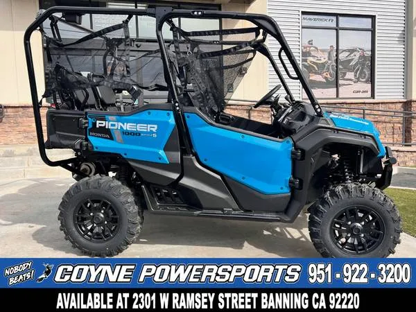 2025 Honda® Pi 1 er 1000-5 Deluxe Versatility is its virtue Versatility and a do-it-all attitude—thats what the Pi 1 er 1000-5 is all about. QuickFlip seats let you carry up to 5 people and fold flat for carrying cargo. The 999 cc engine and automatic DCT transmission are an unbeatable combo. 3 trims—including our new Special Edition this year—make it easy to pick 1 that’s perfect for you. Features may include: Black Aluminum Wheels Automatic DCT Transmission 2500-pound towing capacity Our Pi 1 er 1000 models can tow up to 2500 pounds, making it possible to complete bigger jobs without having to use a tractor or a truck. 1000-pound-capacity tilt bed 1 of the most impressive features of this vehicle is its half-ton bed capacity. Additionally, weve made it easier to dump with a hydraulic assist tilt bed lever. Powerful 999 cc twin-cylinder engine With plenty of power—especially in the midrange and top end—youll experience quick acceleration and exceptional overall performance. Chassis and suspension Beefy tires, long-travel independent front and rear suspension, and our sophisticated driveline provide excellent handling and comfort. QuickFlip® seating A Honda exclusive, 2 QuickFlip® seats in the cargo bed open easily and fold flat when not in use. Condition New Availability In Stock Location Banning Stock Number H 54434 Vin 1 HFVE 04 JXS 4900030 Vehicle Type Utility Vehicle Category Utility Color TEAL BLUE COYNE POWERSPORTS 951-922-3200 *Price, if shown, does not include government fees, registration, taxes, A.D.M., dealer document preparation charges, finance charges, or added accessories installed on the unitif applicable. Final actual sales price will vary depending on options or accessories selected. A.D.M. includes but is not limited to inter-store transportation costs, assembly, servicing, dealer insurance, profit & overhead, flooring & other costs where applicable. All vehicles in this ad are subject to prior sale. All Current Manufacturer Promotions and Rebates are included in pricing. Offers expire when promotion ends OR when advertised vehicles are sold. Warning WARNING: Operating, servicing and maintaining a passenger vehicle, an off-highway motor vehicle or a recreational marine vessel can expose you to chemicals including engine exhaust, carbon monoxide, phthalates, and lead, which are known to the State of California to cause cancer and birth defects or other reproductive harm. To minimize exposure, avoid breathing exhaust, do not idle the engine except as necessary, service your vehicle or vessel in a well-ventilated area and wear gloves or wash your hands frequently when servicing your vehicle or vessel. For more information go to https://www.p 65 warnings.ca.gov/products/passenger-vehicle and https://www.p 65 warnings.ca.gov/products/marine.