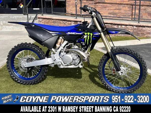 2025 Yamaha YZ 250 Monster Energy Yamaha Racing Edition 2-STROKE ICON An advanced 2-stroke with race-inspired style, the YZ 250 Monster Energy® Yamaha Racing Edition brings thrilling power, a featherw 8 chassis and iconic factory look to dominate the competition. Features may include: NEW FOR 2025 Competition-Inspired Monster Energy® Styling Roll like a factory pro with this striking Monster Energy® Yamaha Racing Edition. Inspired by Yamahas factory race team, iconic blue and black Monster Energy® livery combines with the YZ 250 s sleek, aggressive bodywork for a competition-ready look and feel. TOP FEATURES Exhilarating 2-Stroke Power The 249 cc liquid-cooled YPVS™-equipped reed-valve-inducted 2-stroke engine is lightw 8, compact and fun, with an incredibly wide, hard-hitting powerband. Class-Leading KYB® Suspension The YZ 250 s renowned suspension performance offers unmatched levels of control, capability and comfort by way of the fully adjustable 48 mm inverted KYB® front fork, including a new hand-adjustable clicker for easier compression adjustment, and a fully adjustable KYB® rear shock featuring reduced-friction Kashima Coatâ„¢ internals. It all adds up to class-defining suspension and handling characteristics. Lightw 8 Frame A carefully engineered, advanced aluminum frame and swingarm give the YZ 250 class-leading track performance. ENGINE Exhilarating 2-Stroke Power The 249 cc liquid-cooled reed-valve-inducted 2-stroke engine is lightw 8, compact and fun, with an incredibly wide, hard-hitting powerband. Yamaha Power Valve System Patented Yamaha Power Valve SystemYPVS™combines crisp, hard-hitting bottom-end acceleration with strong mid-range and top-end. Advanced Carburetor Advanced 38 mm Hitachi Astemo® Keihin PWK 38 S carburetor with power jet and throttle position sensor provides precise fuel/air mixing and extra-crisp throttle response. CHASSIS/SUSPENSION High Performance Braking System The high performance braking system features a 270 mm front rotor, 240 mm rear rotor, large front pistons and rigid calipers, all combining to provide exceptional braking power and feel. Industry-Leading KYB® Fork The fully adjustable KYB® 48 mm forks feature the Speed Sensitive System which uses piston speed to control the damping force for super-precise handling, superb bump absorption and 11.8 inches of suspension travel. New for 2025, the fork now includes a hand-adjustable knob for quick, toolless compression adjustments. Advanced KYB® Shock Fully adjustable KYB® shock features reduced-friction Kashima Coat™ internals, 12.4 inches of travel, separate adjusters for high- and low-speed compression damping, and a full lock oil rebound system for increased comfort. It all adds up to fantastic rear wheel control and a sweet ride. ADDITIONAL FEATURES Race-Ready Features Complete with an aluminum handlebar, 2-position adjustable handlebar clamp, new water-resistant PVC handle bar pad, wide foot pegs, gripper seat and adjustable clutch lever with works-style cable adjuster, the YZ 250 is competition-ready straight out of the crate. COYNE POWERSPORTS 951-922-3200 *Price, if shown, does not include government fees, registration, taxes, A.D.M., dealer document preparation charges, finance charges, or added accessories installed on the unitif applicable. Final actual sales price will vary depending on options or accessories selected. A.D.M. includes but is not limited to inter-store transportation costs, assembly, servicing, dealer insurance, profit & overhead, flooring & other costs where applicable. All vehicles in this ad are subject to prior sale. All Current Manufacturer Promotions and Rebates are included in pricing. Offers expire when promotion ends OR when advertised vehicles are sold. Warning WARNING: Operating, servicing and maintaining a passenger vehicle, an off-highway motor vehicle or a recreational marine vessel can expose you to chemicals including engine exhaust, carbon monoxide, phthalates, and lead, which are known to the State of California to cause cancer and birth defects or other reproductive harm. To minimize exposure, avoid breathing exhaust, do not idle the engine except as necessary, service your vehicle or vessel in a well-ventilated area and wear gloves or wash your hands frequently when servicing your vehicle or vessel. For more information go to https://www.p 65 warnings.ca.gov/products/passenger-vehicle and https://www.p 65 warnings.ca.gov/products/marine.