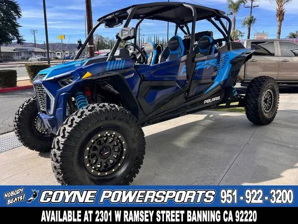 2020 Polaris® RZR Turbo S 4 NASTIEST 4-SEATER EVER THE BEAST. BIGGER & BADDER. 72 Width. 168 HP. 32 Tires. 25 Usable Travel. When the terrain is unrelenting and landscape unknown, there’s no room for pretenders. Features may include: OFF ROAD RAGE INDUSTRYS TOUGHEST MACHINE The new RZR XP® Turbo S has been completely re-engineered to be stronger and tougher in every respect. The vehicle’s monstrous 32 tires and massive 72 stance have been integrated into a brand new, stronger chassis that delivers ruthless performance that can’t be stopped. NOT JUST MORE SUSPENSION XTREME APPEARANCE Not just more suspension, its wicked smart too. RZR XP Turbo S combines 25 of Travel, the most in the industry, with our exclusive DYNAMIX Active Suspension to achieve unstoppable savagery as the beast eats. Gravity has finally met its match. NASTY OUTSIDE. NICE INSIDE. ALL NEW DESIGN, INSIDE & OUT Inside the dark heart of the beast, surrounded by menacing new looks, the entire cockpit has been re-engineered - instinctive in nature, intuitive in control, and purposeful in detail. THE DRIVING FORCE IN OFF-ROAD POWER, SUSPENSION AND AGILITY There are no shortcuts to victory, and we never settle for second best. The all-new RZR XP® 4 Turbo S defies reason with a breakthrough design delivering a menacing combination of performance and industry leading capability. WORLD-PROOF Industry’s Toughest Machine The new RZR XP 4 Turbo S has been completely re-engineered to be stronger and tougher in every respect. The vehicles bold dimensions and massive stance have been integrated into a more stable design that delivers ruthless performance that cant be stopped. 168 HP ProStar Turbo 925 72 Width 25/25 Usable Travel FOX® 3.0 Internal Bypass Live Valve Shocks 32 ITP® Coyote Tires 8-Ply 16 Ground Clearance Xtreme Performance Isolated True On-Demand AWD/2 WD. DYNAMIX Active Suspension™ Ride Command® 7 Display Premium Painted Panels LED Accent Lights & LED Head Lights Lower Doors & Aluminum Roof Condition Pre-owned Location Banning Vehicle Type Utility Vehicle Category Side by Side COYNE POWERSPORTS 951-922-3200 *Price, if shown, does not include government fees, registration, taxes, A.D.M., dealer document preparation charges, finance charges, or added accessories installed on the unitif applicable. Final actual sales price will vary depending on options or accessories selected. A.D.M. includes but is not limited to inter-store transportation costs, assembly, servicing, dealer insurance, profit & overhead, flooring & other costs where applicable. All vehicles in this ad are subject to prior sale. All Current Manufacturer Promotions and Rebates are included in pricing. Offers expire when promotion ends OR when advertised vehicles are sold. Warning WARNING: Operating, servicing and maintaining a passenger vehicle, an off-highway motor vehicle or a recreational marine vessel can expose you to chemicals including engine exhaust, carbon monoxide, phthalates, and lead, which are known to the State of California to cause cancer and birth defects or other reproductive harm. To minimize exposure, avoid breathing exhaust, do not idle the engine except as necessary, service your vehicle or vessel in a well-ventilated area and wear gloves or wash your hands frequently when servicing your vehicle or vessel. For more information go to https://www.p 65 warnings.ca.gov/products/passenger-vehicle and https://www.p 65 warnings.ca.gov/products/marine.