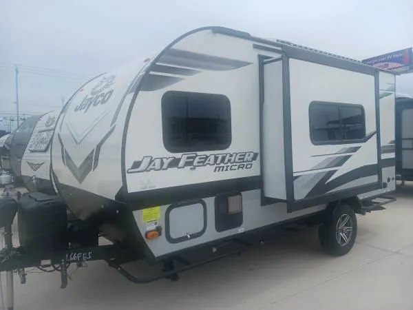 2022 Jayco Jay Feather Micro model 166 FBS, just like new inside and out this is a heavy duty trailer with heavy duty 16 in Goodyear tires, made to go on asphalt or off-road, aluminum wheels, Glacier package, good in cold weather, side rails, fiberglass exterior, power awning and power tongue jack, side and backup cameras, climate package, this 1 has the Azdale composite panels in the construction, these are expensive trailers new, they run in the mid to Upper 30 s, this 1 has all the options and is ready to go on sale $19,995 more pictures and info upon request, we welcome trades and offers, call or text Joe for your BEST deal, 830-660-7074, please call for info on other used and new units we have on the lot , thanks JUST LOWERED THE PRICE!!