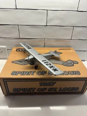 Selling this 1927 Spirit of St Louis 1/4 scale metal toy airplane in perfect condition still in the box. Stk#FE-5005. Cash only no gimmicks, live in north Dallas. Please text or contact Scott at 972-978-0828. Measures 11 wingspan 8 long and 2 tall