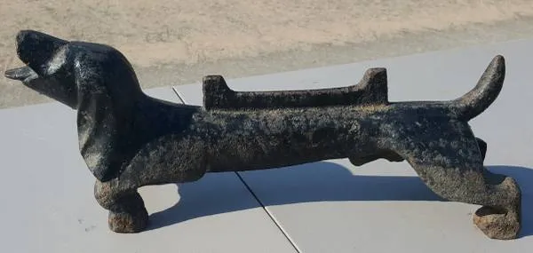 Please text me only on 281-818-0957 if you are interested in the items posted, serious buyer only, no call please. I will not give personal address but public place address for meeting up Very heavy cast iron dog boot scraper, 35 lbs Size: 20 L x 8 H x 6 W with original paint