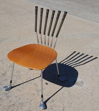 Please text me only on 281-818-0957 if you are interested in the items posted, serious buyer only, no call please. This is a very unique , 1 of the kind chair, made of Golf drivers as legs with curved wood seat top Great gift for any golfers Very sturdy and in great condition