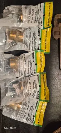 4 × A-665 tapped hose adapter 3/4 MH × 3/4 MIP × 1/2 tapped FIP all jew in bag. 1 × A-661 swivel hose adapter 3/4 FH × 3/4 FIP new in bag. Also, pvc angles, fittings, shutoff, O-ring washers, and other accessories. All brand new. Take everything in photos for only $20. Over $100 value. Call or text 508-809-0659