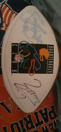 Boomer Esiason and Ronnie Lippett signed football. In great condition. Both signatures are legible with their jersey numbers. 2 NFL greats from 1980 s to 1990 s who both played in a Superbowl during the 1980 s. Great for any Patriots fan, Ronnie Lippett played for NE Patriots from 1983 to 1991. Asking only $40/BRO. Call or text 508-809-0659