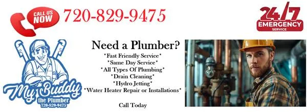 The same Day service is available call now and get booked!! 720-829-9475 Rely on My Buddy the Plumber for residential plumbing services in the Denver, CO, area and the surrounding communities. Our skilled team will keep your home’s plumbing in top condition. We handle everything from routine maintenance to urgent repairs, ensuring your home stays safe and comfortable. To get a free estimate, call our team at 720829-9475. Leak Detection and Repair Undetected leaks can cause significant damage over time. Our experts use advanced technology to locate and repair leaks quickly and efficiently. Whether it’s a minor drip or a major leak, we ensure your plumbing system remains watertight, and your home is protected. Drain Cleaning and Unclogging Clogged drains can be a major inconvenience. We offer professional drain cleaning and unclogging services, including hydro jetting, to clear even the most stubborn blockages. Our methods are safe and effective, restoring proper flow and preventing future issues. Water Heater Installation and Repair A reliable water heater is essential for any home. We provide comprehensive water heater services, including installation, repair, and maintenance. Whether you need a new water heater or your existing 1 needs fixing, our team ensures you have hot water when you need it. Fixture Installation and Repair From faucets and spouts to sinks and toilets, we handle all types of fixture installations and repairs. Our team ensures that every fixture is installed correctly and functions perfectly. We also offer repair services to fix any issues and keep your fixtures in top shape. 720-829-9475