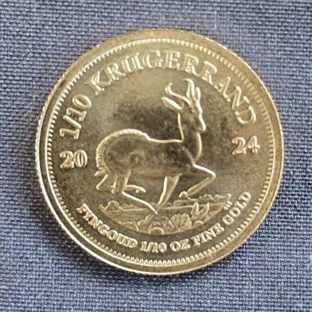 🚨 2024 South Africa 1/10 oz Gold Krugerrand BU 🦌 ⚖️ Contains 1/10 oz actual gold w 8, 3.39 grams Brilliant Uncirculated condition✨ 🪙 Minted by South African Mint These go for $545 🔥 ☎️ Text at 726-241-7414 💰 Sale price $480 cash!