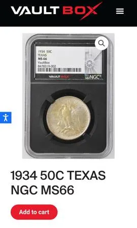 🚨 Beautiful high-grade 1934 Texas Commemorative Half Dollar. Graded MS 66 by NGC, presented in the rare Vault Box Black Core holder. Excellent luster, sharp strike, and strong eye appeal 🔥 •Vault Box Black Core ⚫️ 90 Silver, 30.6 mm, 12.5 g 🪙 •Brilliant uncirculated surfaces •Certified authentic by NGC 💯 A top-tier example of this popular classic commemorative. Great addition to any collection 🇺🇸 ☎️ text at 726-241-7414 $375 cash 💰