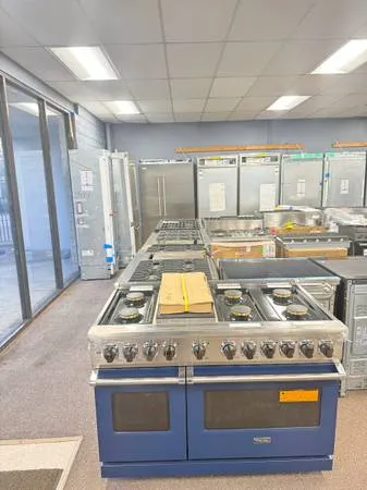 48 W./24 D. Dual Fuel Self-Clean Sealed Burner Range-6 Burners/Griddle-Slate Blue Upgrade your kitchen with this Viking Professional 5 Series 48 Dual Fuel Range in rare Slate Blue – top-tier power, precision, and style! 🛠️ Condition: BRAND NEW OPEN BOX – fully functional, inspected & ready to install 🏬 Available at: Bay Area Appliances Warehouse 📍 893 W A Street , Hayward, CA, 94541 📞 Call/Text:415-547-9998 or 415722-9820 Ask for John ✅ Key Features: • 6 Sealed Gas Burners + Griddle • Electric Convection Oven – Self-cleaning • Stunning Slate Blue Finish – Luxury design • Professional performance for serious cooking • Heavy-duty cast-iron grates • SureSpark™ Ignition & VariSimmer™ Technology 📏 Dimensions: • Width: 47.87 • Depth: 25.75 • H 8: 35.87 💸 Wholesale pricing – limited quantity! 💬 First come, first served — contact us today! #VikingRange #DualFuelRange #LuxuryAppliances #SlateBlueViking #KitchenUpgrade #OpenBoxDeal #BayAreaAppliances #HaywardDeals #VikingStove #ProfessionalKitchen #HighEndAppliances #GriddleRange #NewAppliances #KitchenSale #ApplianceWarehouse Viking 48 inch range Slate blue Viking stove Viking dual fuel range 6 burner gas range Griddle stove for sale New open box appliances Bay Area appliance deals Hayward kitchen appliances Viking professional series High-end stove for sale