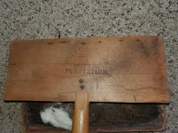 SET OF COTTON CARDING COMBSUSED YEARS AGO TO CLEAN COTTON BY HAND THIS SET CAME TO OKLAHOMA FROM ALABAMA IN 1903 THEY ARE 119 YEARS OLD THAT WE ARE SURE OF THEY ARE MARKED WHITTEMORES NO. 10 A COTTON PLANTATION WELL USED CONDITION, COTTON YOU SEE IS WHAT WAS LEFT WHEN LAST USED THIS IS A GOOD PRICE FOR SOMETHING THIS OLD, A COLLECTORS FIND FOR SURE 405-413-8671